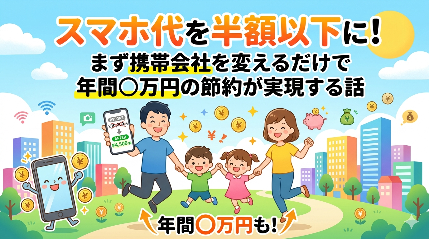 節約を始めたいなら、まず携帯電話料金を見直してください。特に大手キャリア(au・docomo・SoftBank)をそのまま使い続けている方は、同じサービスを半額以下で受けられる可能性が高いです。